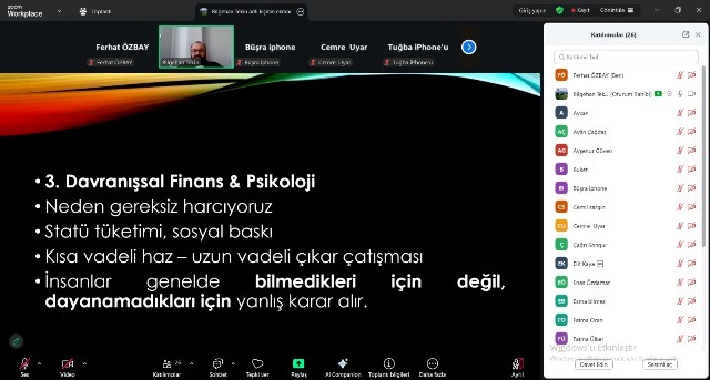 Bankacılık ve Sigortacılık programı öğrencilerimize yönelik, finansal okuryazarlık konferansında, öğrencilerimizin ve meslek hayatlarında kendilerinden hizmet alacak kişilerin bilgi ve bilinç düzeylerini artıracak değerli bilgiler verildi. Öğrencilerimizin bakış açılarını genişleten konferansta aktardığı bilgilerden ve değerli katkılarından dolayı Doç.Dr. Bilgehan TEKİN'e teşekkür ediyoruz.